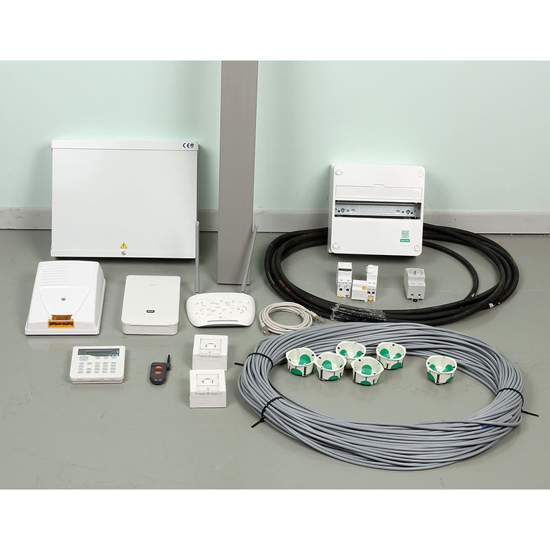 • 1 grade 2 or 3 communicating alarm control panel with integrated web server. A battery is included to operate in the event of a power outage.