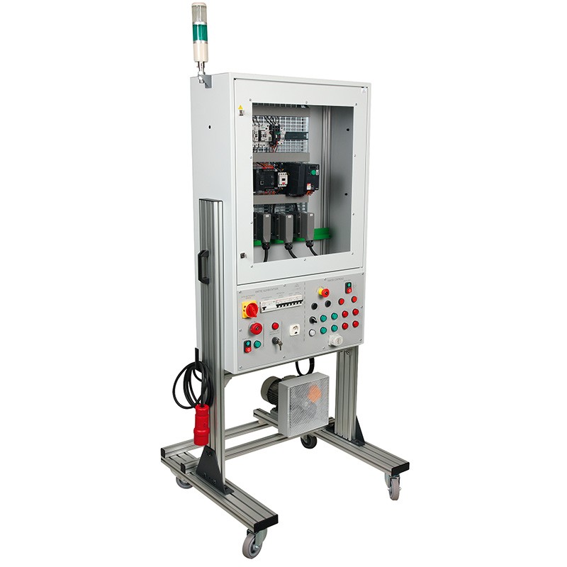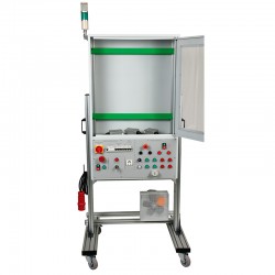 This operational section, equipped with a containment cabinet, allows, with optional grilles, to study and install the wiring for a tunnel access and ventilation system equipped with a CO2 level control system simulated by a potentiometer. It includes a motor-driven fan responsible for air renewal.