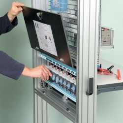 SOL-DIAG est une maquette solaire permettant de réaliser des pannes en différents points du câblage. Les pannes sont réalisables par l’enseignant en tournant de simples commutateurs. L’ensemble est constitué d’un châssis aluminium sur roulettes, d’une grille de câblage avec des composants solaires, d’un ensemble de commutateurs et d’un panneau photovoltaïque indépendant. La tension du circuit ne dépasse pas 30VDC. L’élève peut donc effectuer les mesures et les essais en toute sécurité quel que soit le type de panne.